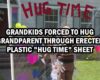 Heart-breaking footage taken in May last year shows children being forced to hug their grandparent through an erected plastic sheet at the end of their driveway.