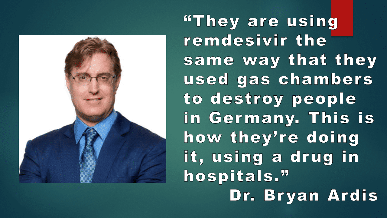 “They are using remdesivir the same way that they used gas chambers to destroy people in Germany. This is how they’re doing it, and perpetuating those deaths, using a drug in hospitals,” said Dr. Ardis