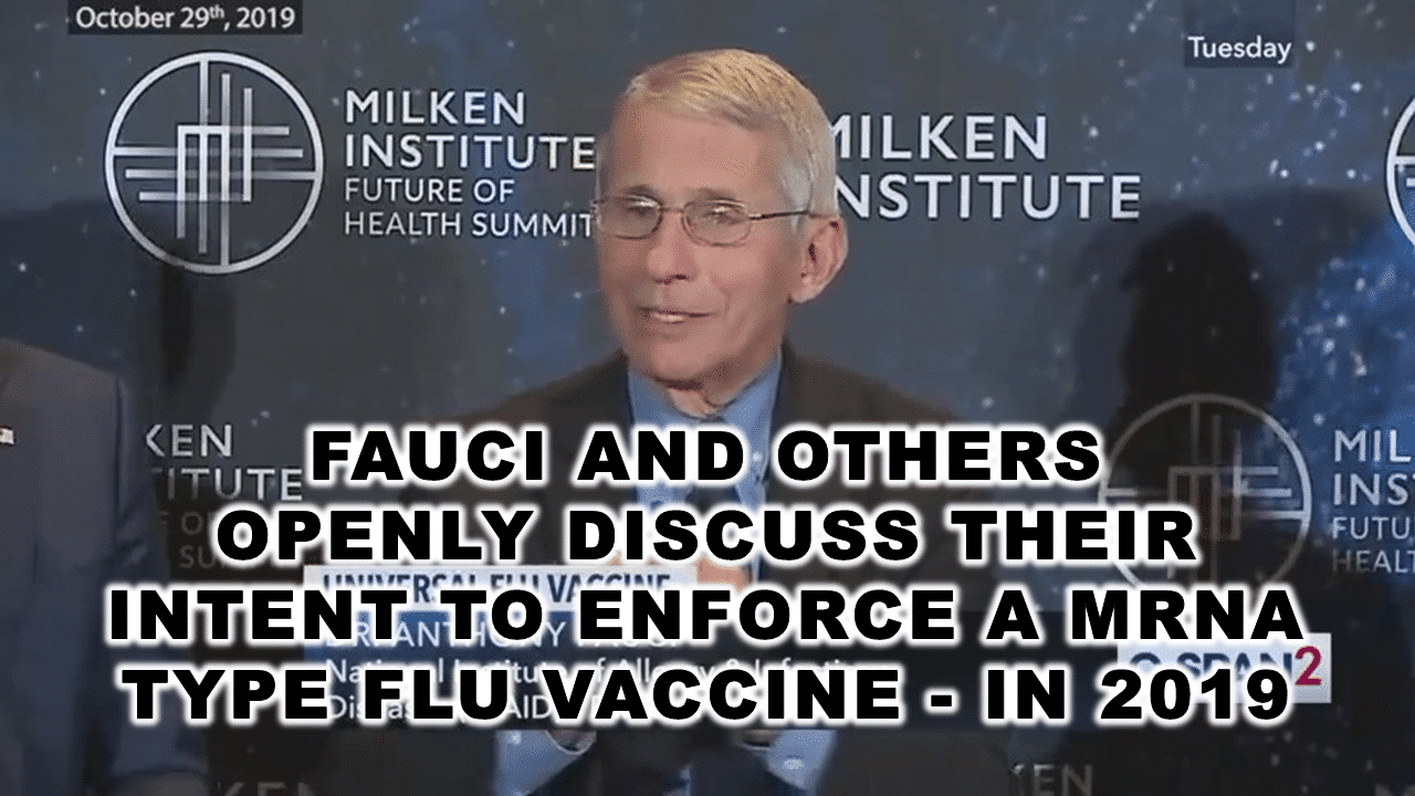 An explosive video of Fauci with Health and Human Services (“HHS”) officials and other health experts discussing how to enforce a mRNA-based universal flu vaccine is circulating on social media.  The video clip is taken from a forum hosted by the Milken Institute in October 2019.  Panellists include Anthony Fauci, Michael Specter and Rick Bright.
