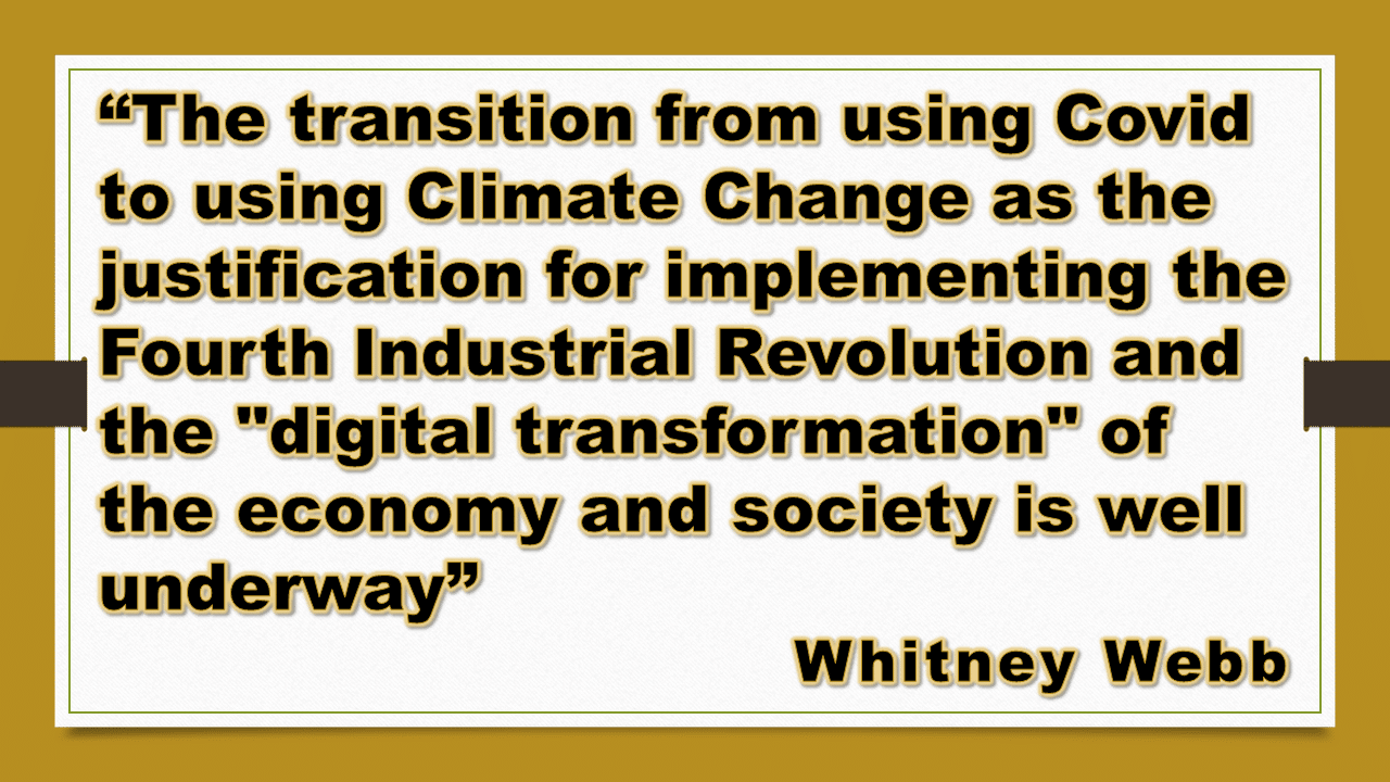 “The transition from using Covid to using Climate Change as the justification for implementing the Fourth Industrial Revolution and the “digital transformation” of the economy and society is well underway” – Whitney Webb