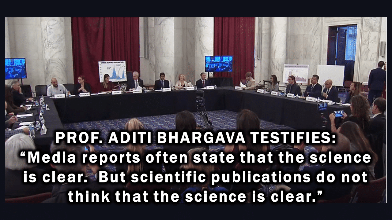 Her testimony in Washington D.C. covered vaccine safety, vaccine trials and natural immunity which is the “gold standard” and “mandates to prevent spread by using spike antibody levels as the gold standard is gross misrepresentation of data” Prof. Bhargava said, “trust in scientific methods is at stake.”