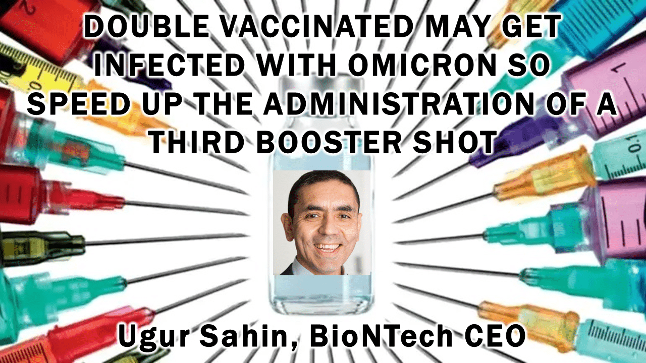 In the following text, words in Italic-bold are extracted from an article published by The Hill titled ‘BioNTech co-founder: Vaccinated unlikely to become seriously ill from omicron’. Words in normal type are our comments and extracts from relevant articles published elsewhere.