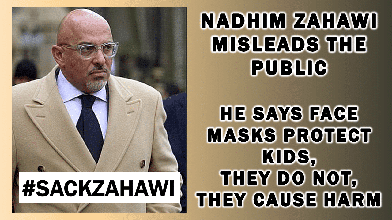 Despite the apparent support by The Teachers’ Union (“NASUWT”) – which “provides unrivalled protection, benefits and support for teachers … by putting teachers [not children] first” – things are not looking good for Zahawi as even the BBC has broken ranks and reported that the government admits the evidence for using masks in schools to reduce spread of Covid is ‘not conclusive’. The ‘not conclusive’ verdict was acknowledged in a review used by ministers in England to make their decision to introduce face coverings in classrooms.