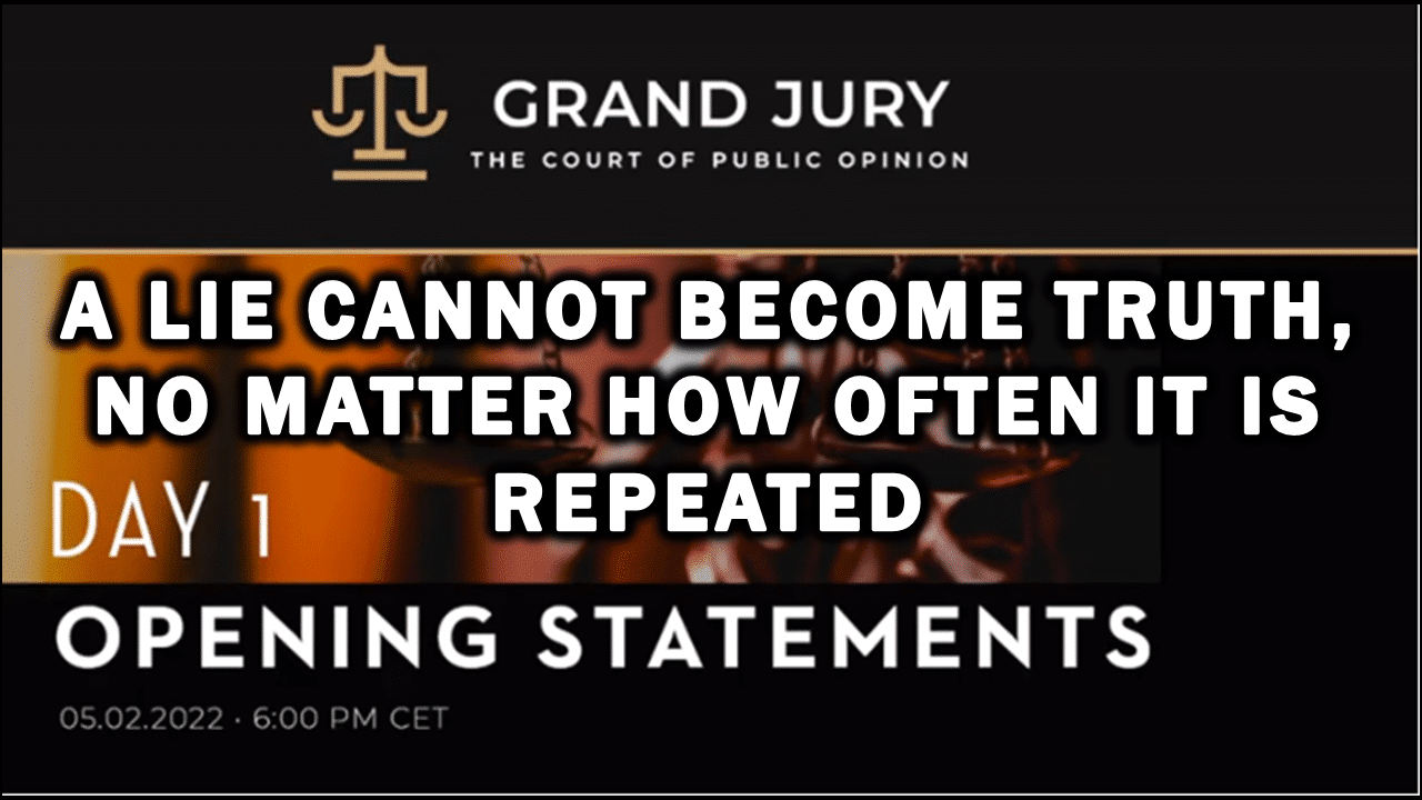 On Saturday 5 February 2022 lawyers gave their opening statements at the Grand Jury Proceeding by the People’s Court of Public Opinion, an international natural law court. Attorney at Law Dexter L-J. Ryneveldt from South Africa gave an opening statement on violations of international codes, the pLandemic and the false narrative of “follow the science.”