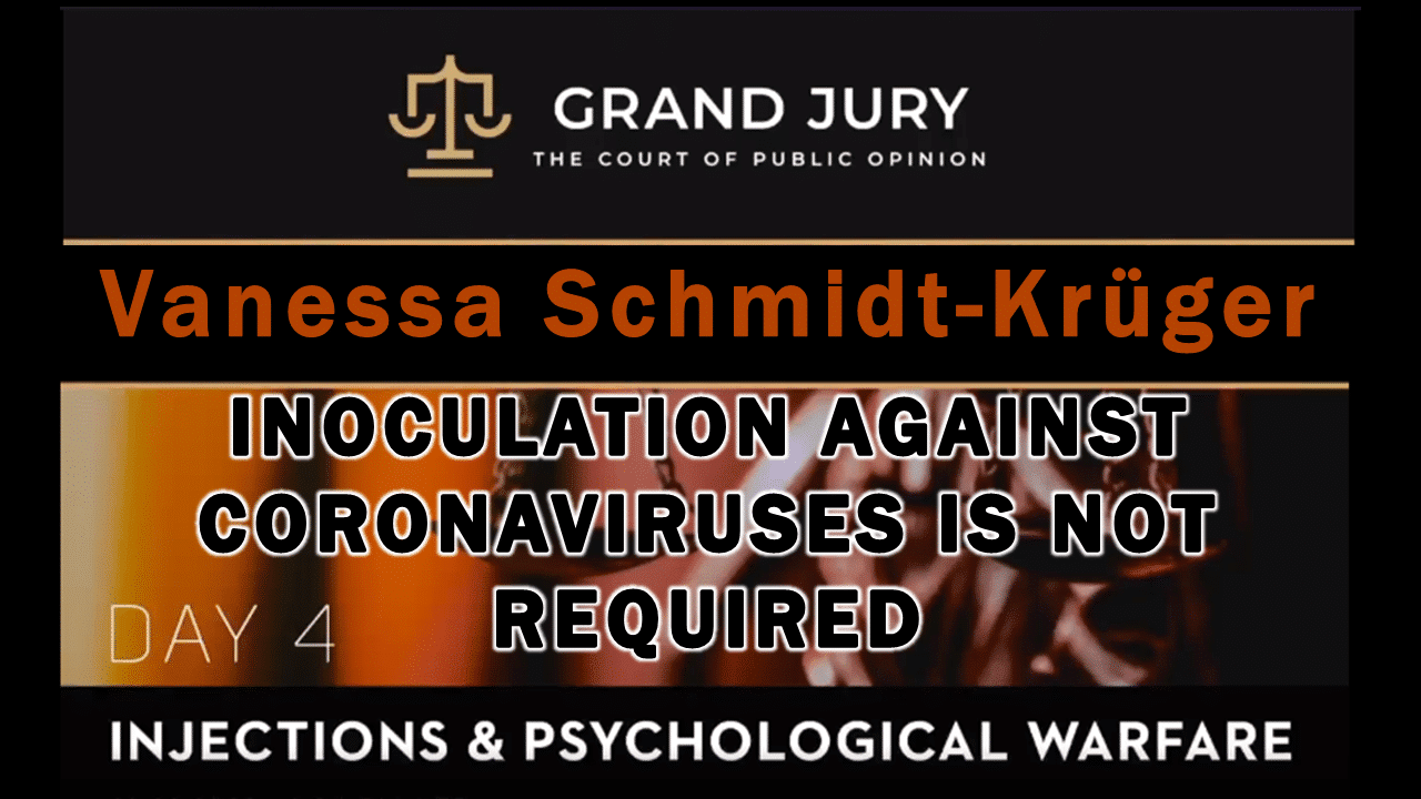 During her testimony on Day 4 of the Grand Jury Proceeding by the Peoples’ Court of Public Opinion, Dr. Schmidt-Krüger explained why the media’s and governments’ narrative is not following known science about coronaviruses, natural immunity, antibodies, re-infection and why the “vaccines” are defective rather than effective. “The public should know that Pfizer has cheated [in their trails],” she said.