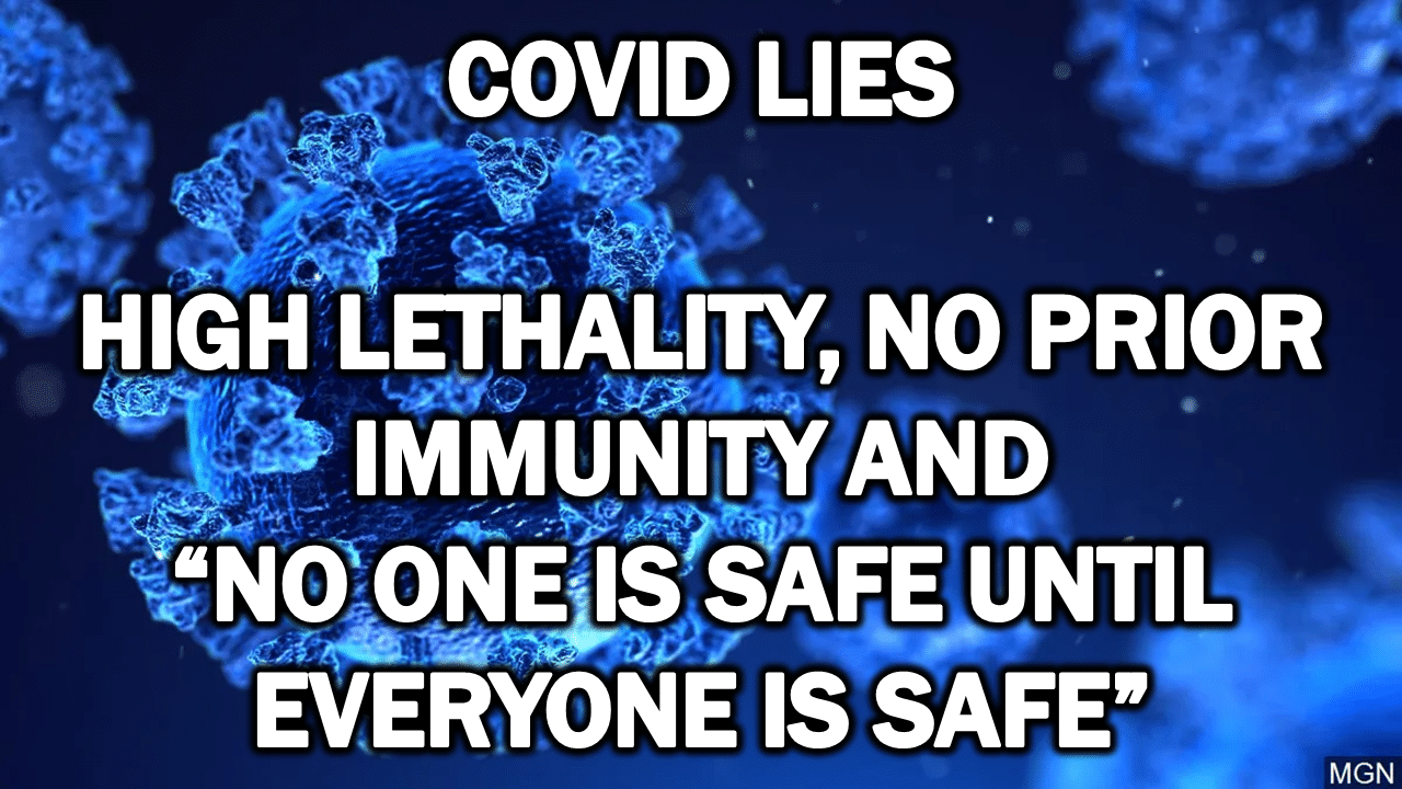 Seems reasonable, doesn’t it? This remark, made repeatedly early on, aimed to squash any notion that there was a degree of “prior immunity” in the population. Prior immunity and natural immunity are only now, two years in, not considered “misinformation”.