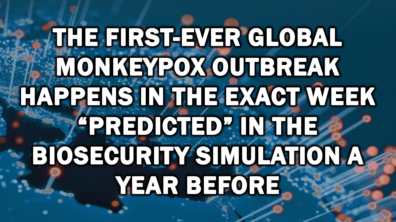 Elite media outlets around the world are on red alert over the world’s first-ever global outbreak of Monkeypox in mid-May 2022 – just one year after an international biosecurity conference in Munich held a simulation of a “global pandemic involving an unusual strain of monkeypox” beginning in mid-May 2022.