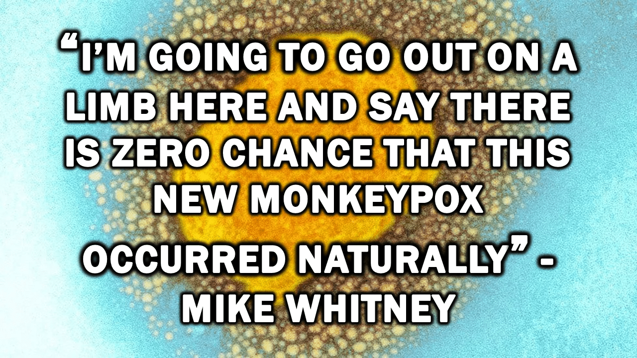 I’m going to go out-on-a-limb here and say there is zero chance that this new disease occurred “naturally”. The only rational assumption one can make, is that monkeypox, like Covid, is a lab-generated pathogen spread by covert agents that are prosecuting a bio-war on the global population.
