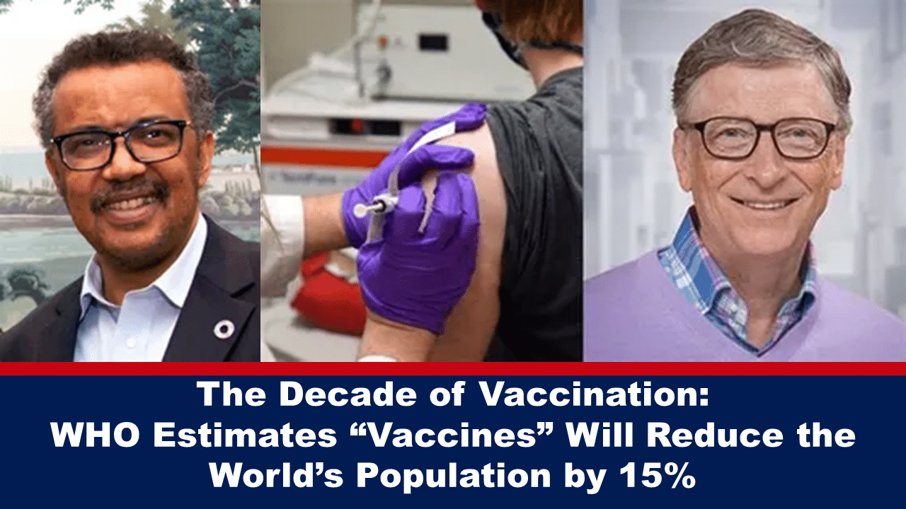 “Based on their own 2011 estimate, and … this is a chilling estimate, but we just have to put it out there … When the Bill and Melinda Gates Foundation, the Chinese CDC, the Jeremy Farrar Wellcome Trust and others published ‘The Decade of Vaccination’ for the World Health Organisation back in 2011 their stated objective was a population reduction of 15% of the world’s population.