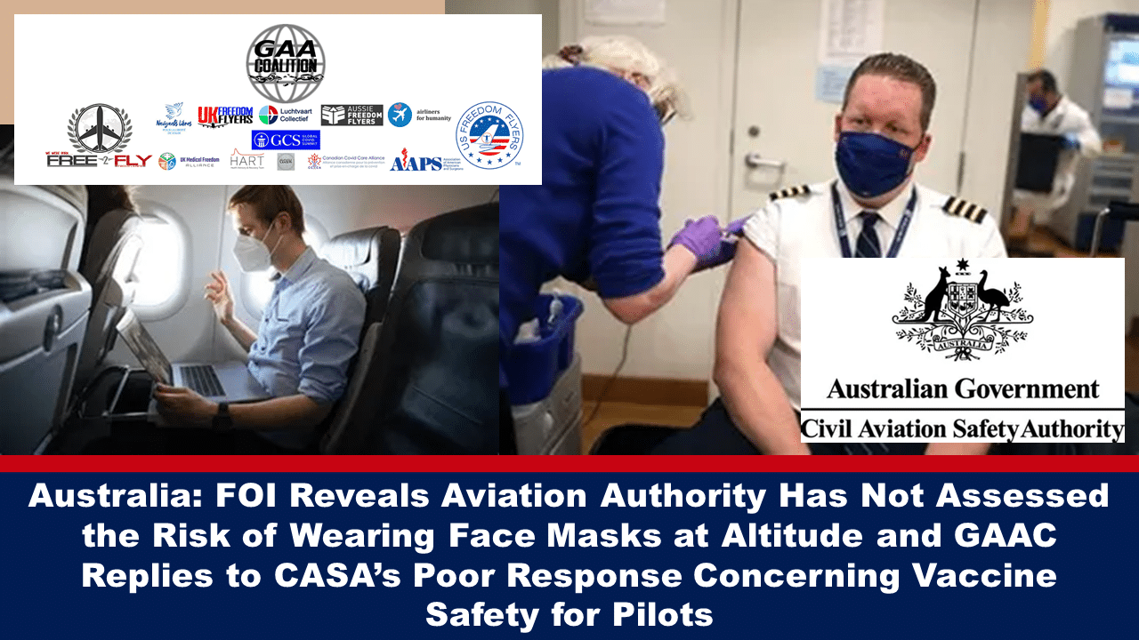 Global Aviation Advocacy Coalition (“GAAC”) published the FOI response from the Civil Aviation Safety Authority (“CASA”) – there are no risk assessment documents regarding the wearing of face masks during flights: