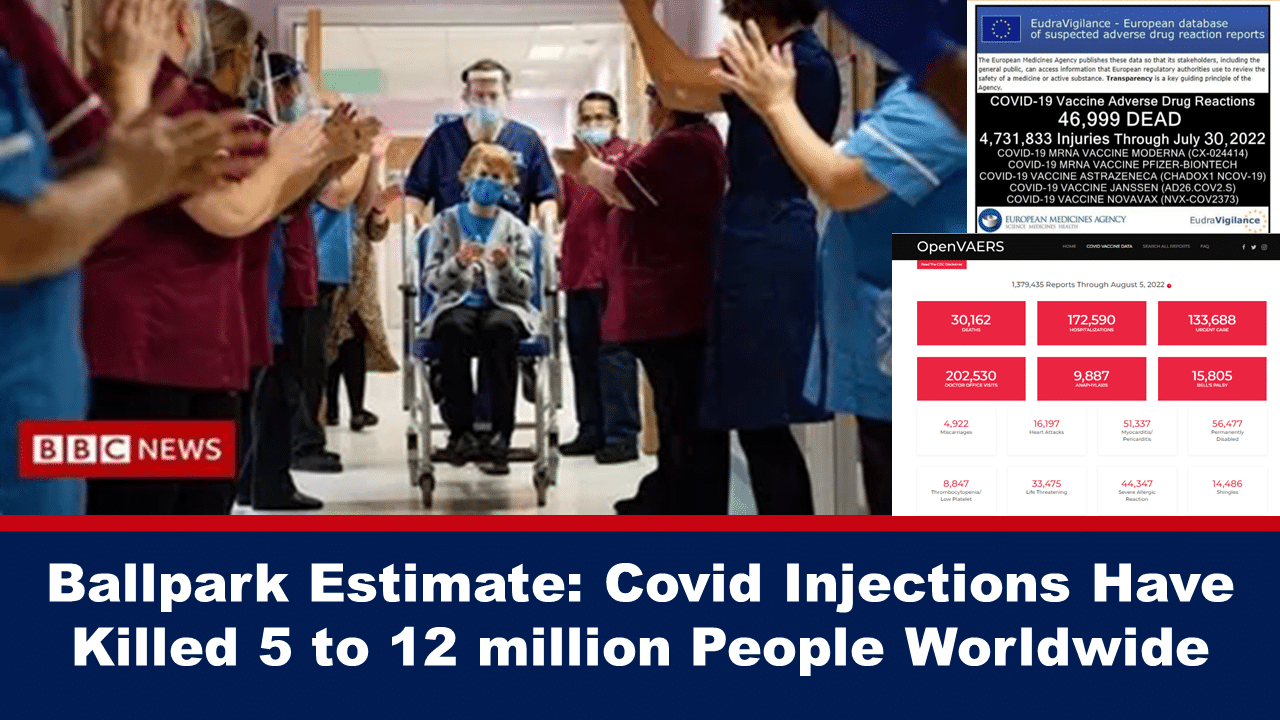 What is the number of deaths, worldwide, from Covid injections? By doing a rough calculation Steve Kirsch arrives at a ballpark figure of 12 million.