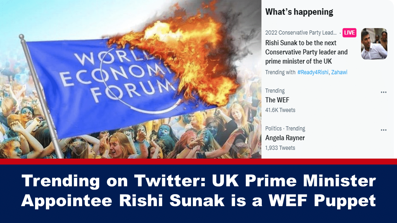 Last night, at the time of writing, two main themes emerged from the top “WEF” tweets: Rishi Sunak, the newly appointed UK Prime Minister, is a WEF puppet; and, Premier Danielle Smith is exposing WEF’s involvement in Alberta’s healthcare.
