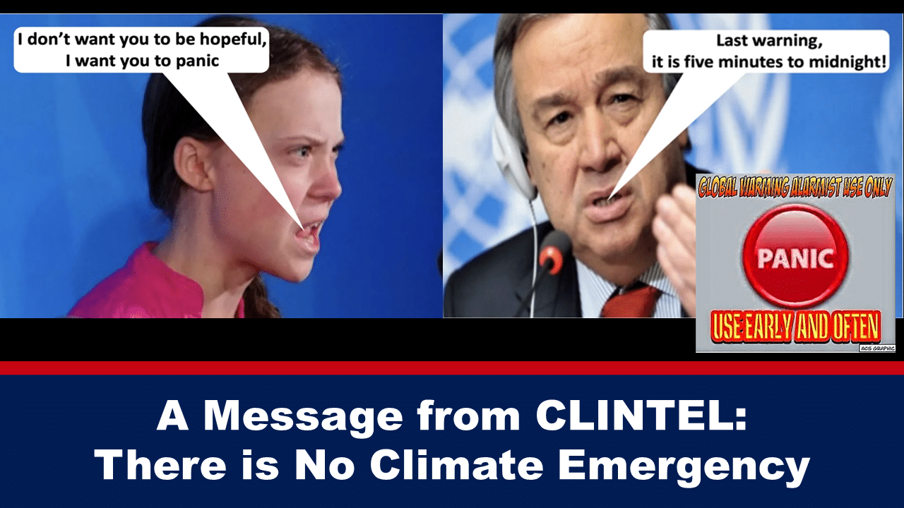 The President of Climate Intelligence (“CLINTEL”), Guus Berkhout, has published a message to all the people of the world.  His message is simple: There is no climate emergency.