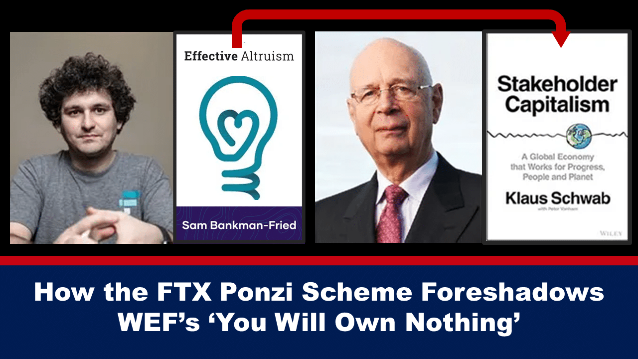 “What many in the mainstream are missing … is [Bankman-]Fried’s attachments to the [WEF], various global elitists and his avid sermonising of the tenets of ‘effective altruism,’ which are nearly identical to the tenets of Klaus Schwab’s stakeholder capitalism agenda.
