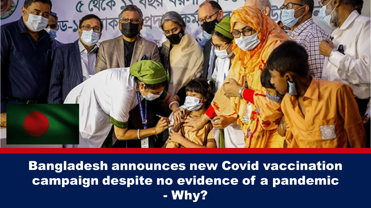 Even if the “vaccines” were safe and effective, there doesn’t seem any health justification for the newly announced vaccination drive, or previous campaigns for that matter.  Bangladesh has an estimated population of roughly 167-168 million, depending on which source is used. The total number of deaths attributed to Covid since the beginning of the “pandemic” is 29,434.