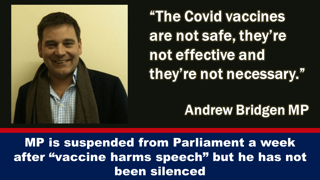 As the news of Mr. Bridgen’s suspension was breaking, Darren McCaffrey of GB News reported that Mr. Bridgen’s suspension was in no way related to his speaking out against vaccine harms because it dates back to a couple of months ago. Mr. Bridgen had filed an appeal and it was his appeal that was denied on Tuesday.