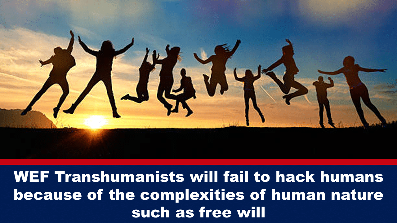 One of the complexities that WEF members have failed to grasp is free will. Yuval Noah Harari, for example, seems to think free will is merely an output of what has been input into the “machine” – the machine is us. There is nothing in the machine to transform what is input. Instead, there is an algorithm in the machine that can be decrypted and reprogrammed – that can be hacked. How wrong they are.