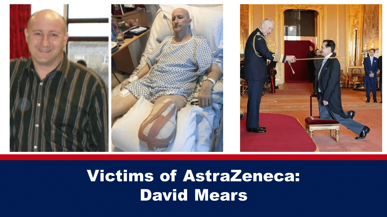 It’s possible that Mr. Mears suffered from deep vein thrombosis. Scientific studies have admitted a link between the viral vector AstraZeneca ‘vaccine’ and blood clots, with 445 cases of major thrombo-embolic events (blood clots) and concurrent thrombocytopenia (low platelet counts) reported to the MHRA as of 23 November 2022. All but 51 of these were reported, as happened with Mr. Mears, after the first injection, and 81 of them resulted in death. However, because he had been told by the NHS that flu-like symptoms were among the expected reactions to the ‘vaccine’, Mr. Mears delayed contacting the hospital and may have developed May-Thurner Syndrome or perhaps critical limb ischemia, which if left untreated can lead to amputation. With the ongoing censorship of information about the risks of taking these ‘vaccines’, his doctors have yet to offer a diagnosis of their own. Mr. Mears said: ‘The doctors say it’s hard to prove that it’s linked to the Covid jab and that the infection could have been there for some time, but I don’t think it’s a coincidence.’ Following complications from the first operation, his entire leg was amputated. David Mears said that his goal was to have use of a prosthetic leg by the end of 2021, and I wish him well in his recovery. He has a GoFundMe page, set up to cover his medical expenses and rehabilitation.