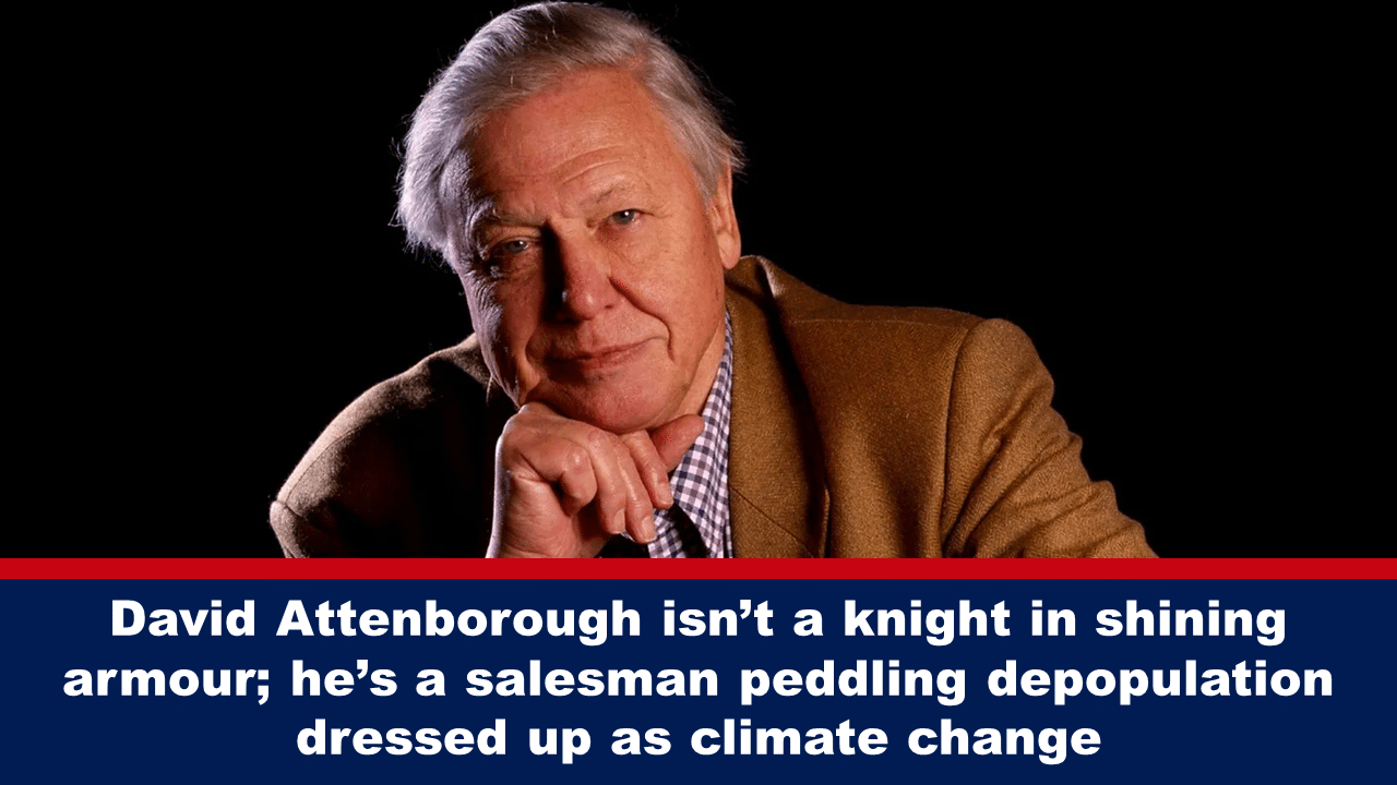 The World Economic Forum (“WEF”) and the World Wildlife Fund (“WWF”) have chosen three leading influencers – Greta Thunberg, Jane Goodall and David Attenborough – to market the ideology under the guise of a “new deal for nature.” In a previous article, we briefly looked at Goodall, who is not good at all. In this article, we briefly look at Attenborough.