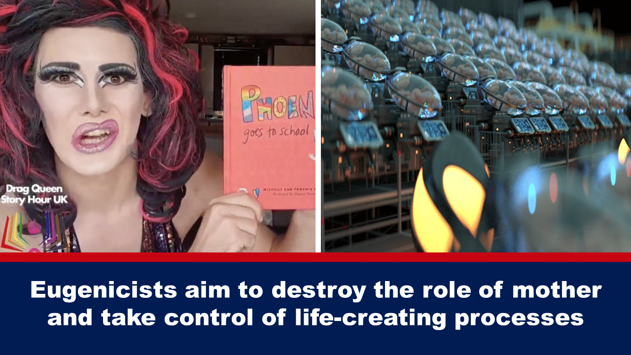Featured image: Drag Queen Story Hour UK reveals true colours with ‘love has no age’ tweet (left), EctoLife’s Artificial Womb (right)