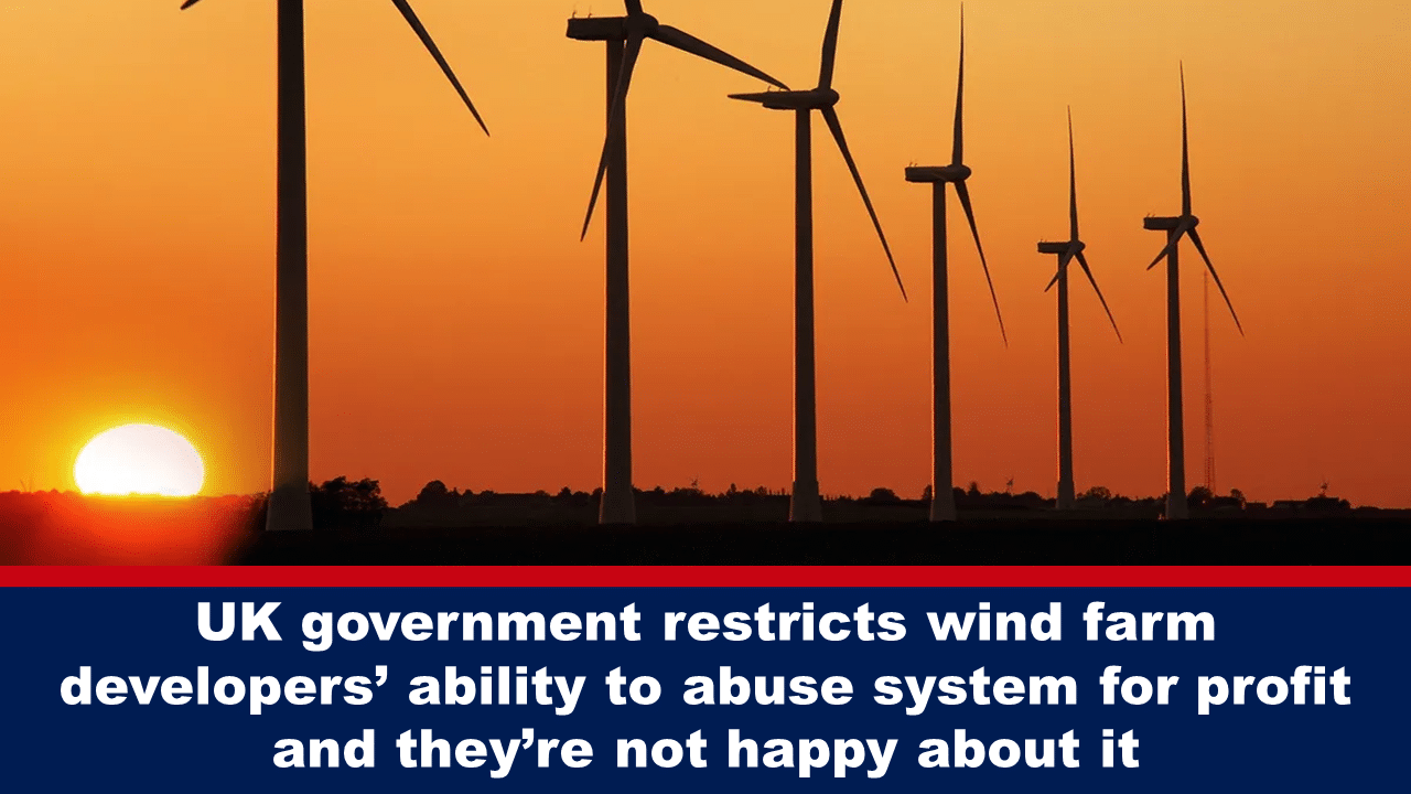 UK government restricts wind farm developers’ ability to abuse system for profit and they’re not happy about it