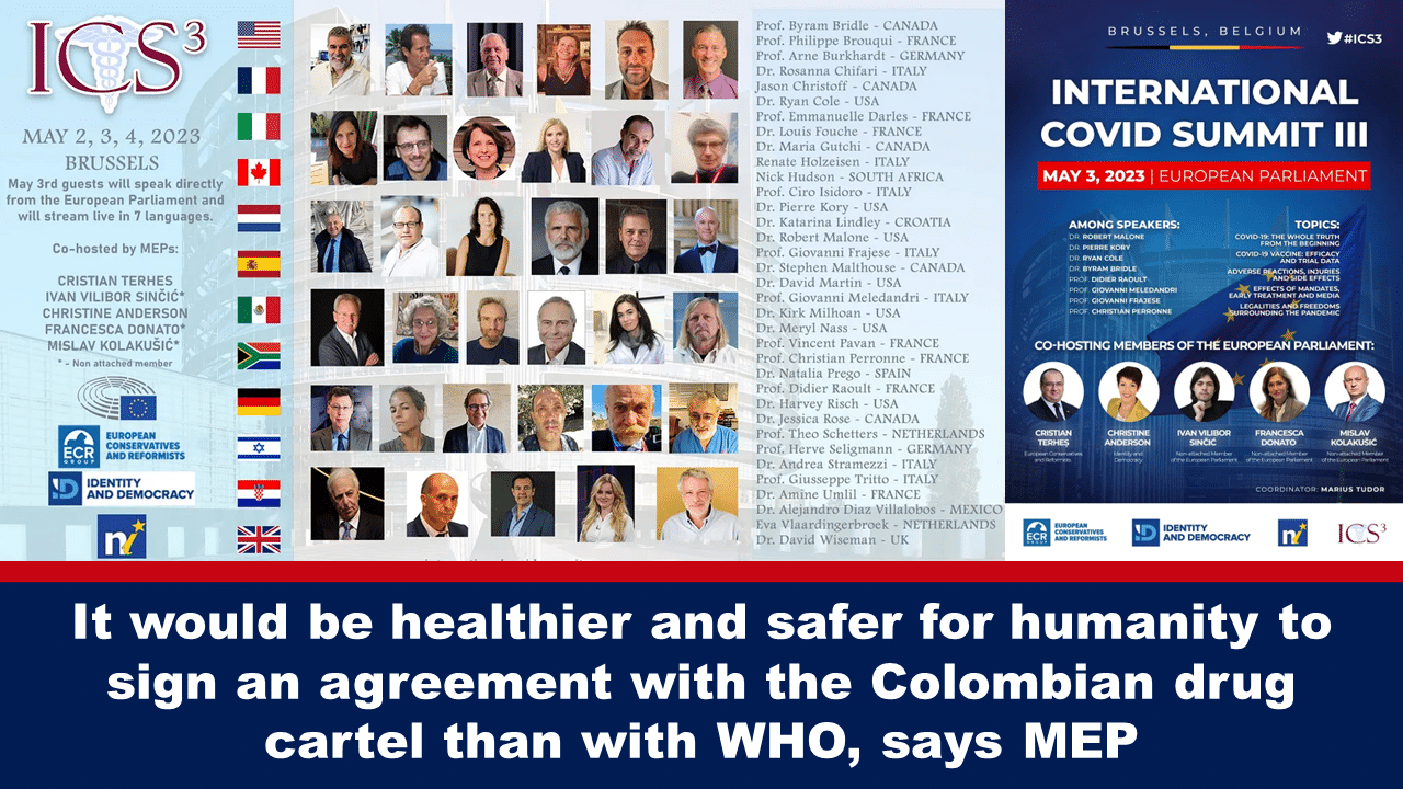 MEP Mislav Kolakušić (Croatia) said: “The World Health Organisation wants all countries to sign an agreement on handing over the authority to declare a pandemic, procure vaccines and drugs. It will be healthier and safer for humanity to sign an agreement with the Colombian drug cartel.”