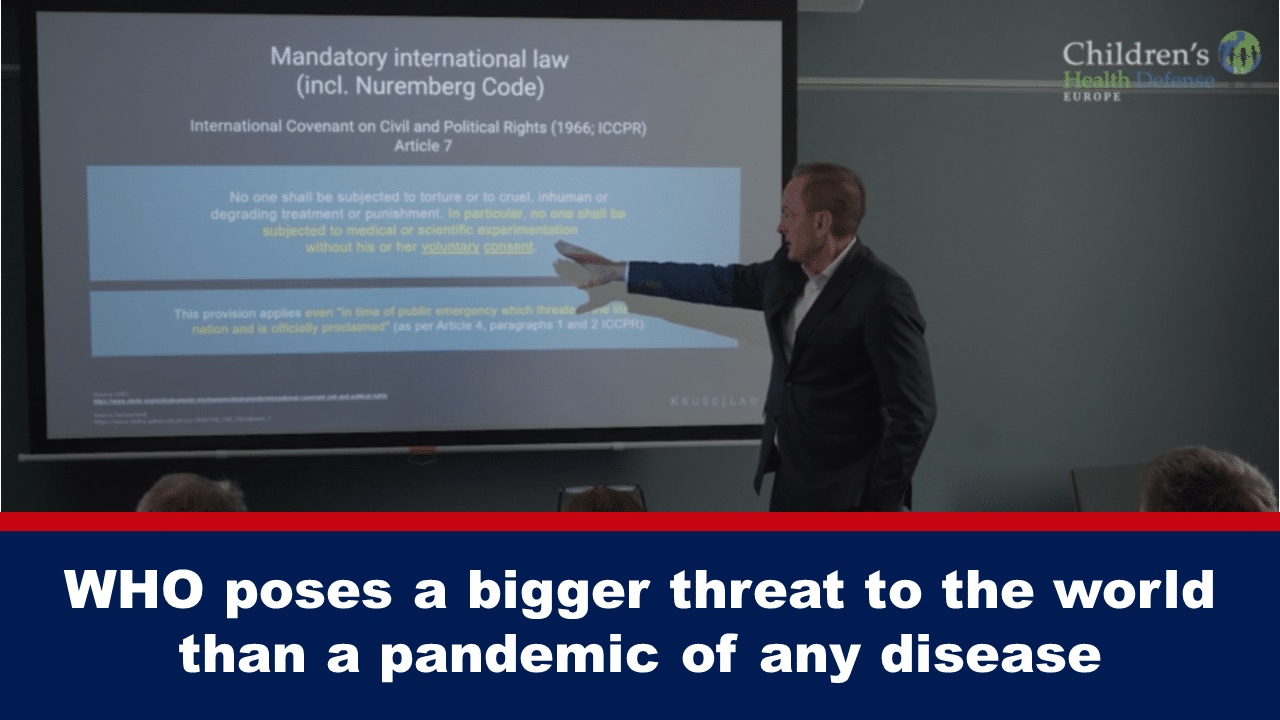 At a conference held in Norway, Swiss Attorney at Law Philipp Kruse spoke about the World Health Organisation’s (“WHO’s”) ambition to establish new rules for its own nefarious purposes. For his presentation, he selected critical aspects of WHO’s power grab through the amendments to International Health Regulations (“IHRs”) and the proposed new Pandemic Treaty.