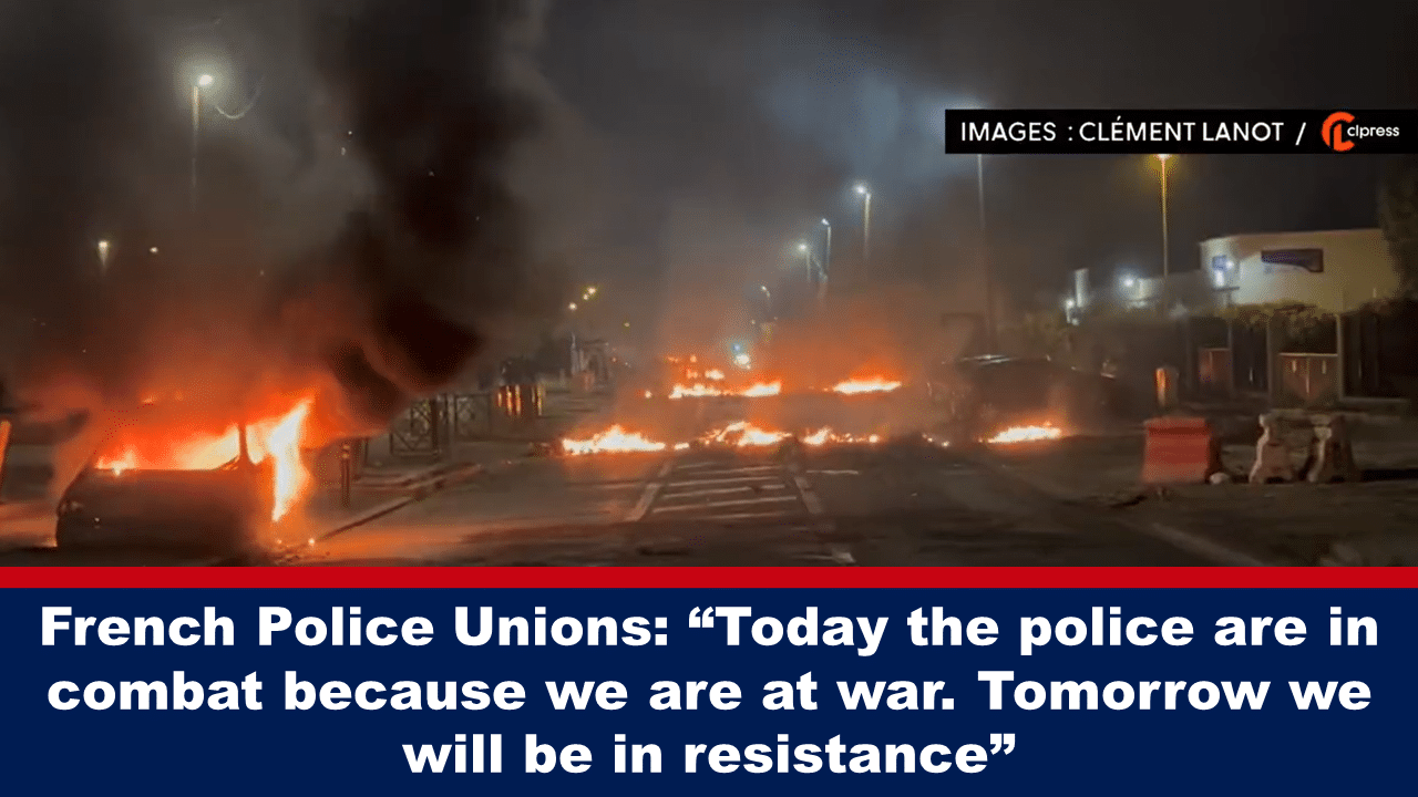 Amid the ongoing violence in France, police unions which represent half of the French police tweeted a statement on Friday: “Today the police are in combat because we are at war. Tomorrow we will be in resistance and the government will have to become aware of it.”