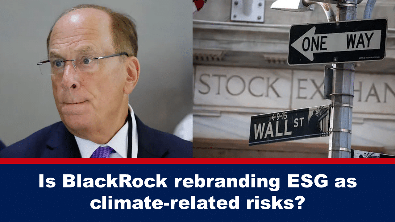 Featured image: Larry Fink “ashamed” to be part of ESG political debate (left). Here’s how the world’s largest money manager is overhauling its strategy because of climate change (right).