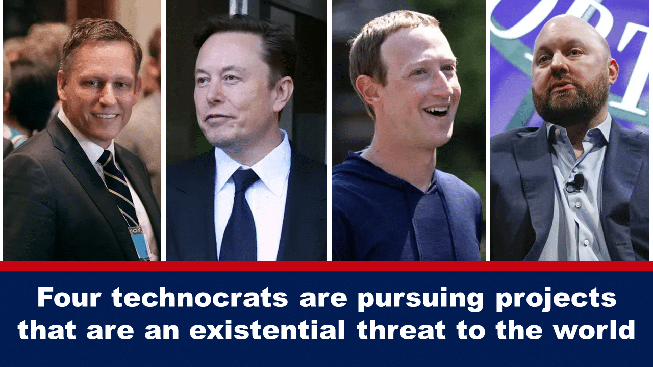 Four powerful billionaires – Peter Thiel, Elon Musk, Mark Zuckerberg, and Marc Andreessen – are creating a world where “nothing is true and all is spectacle.” Together they have four projects to pursue their visions: Web3, cryptocurrency, interplanetary colonisation and transhumanism. These four projects together with artificial intelligence are an existential threat to the world.
