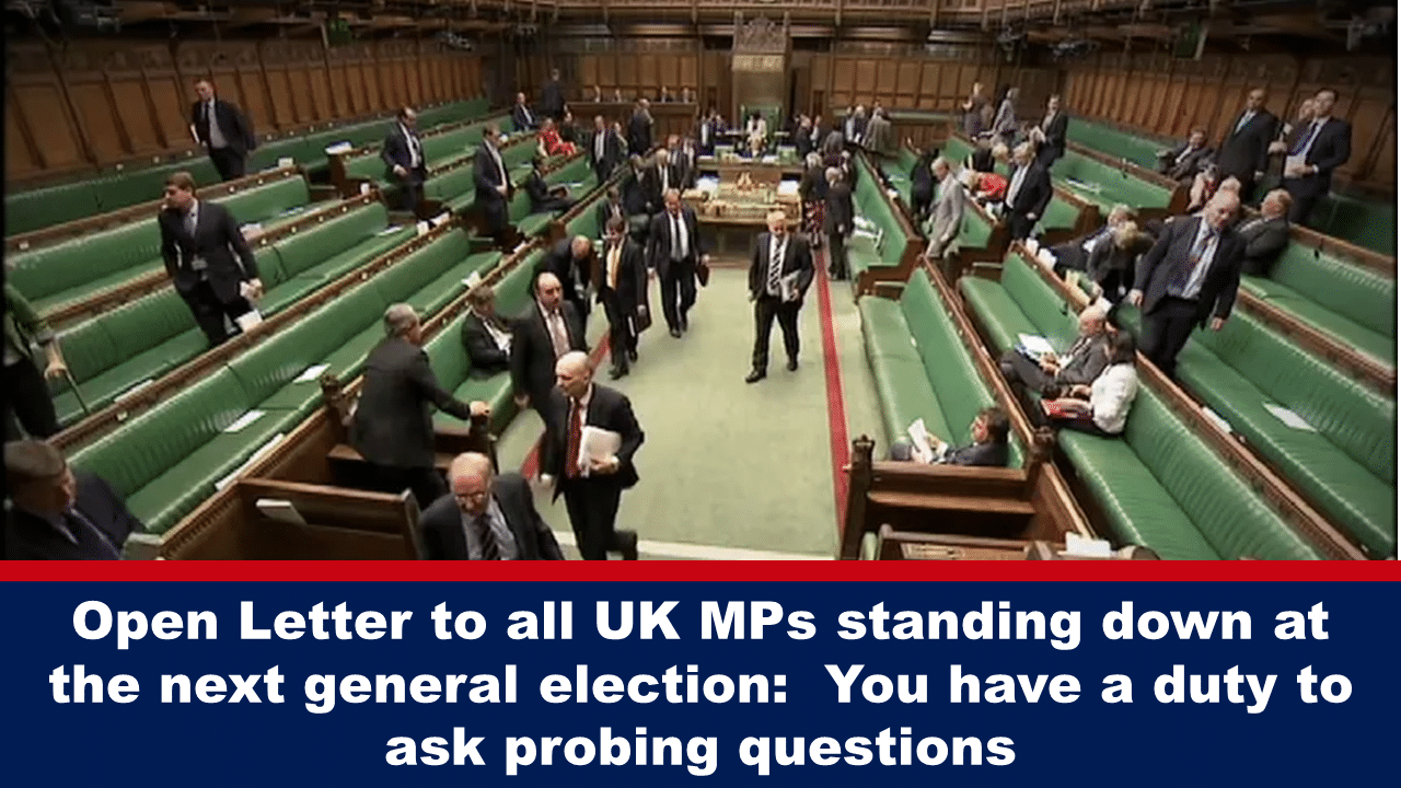 Below is an open letter to these MPs who, while they are MPs, have a duty to the public whom they serve. You can find a Word version of this letter HERE if your MP is on the outgoing list and you wish to send a copy to him/her.