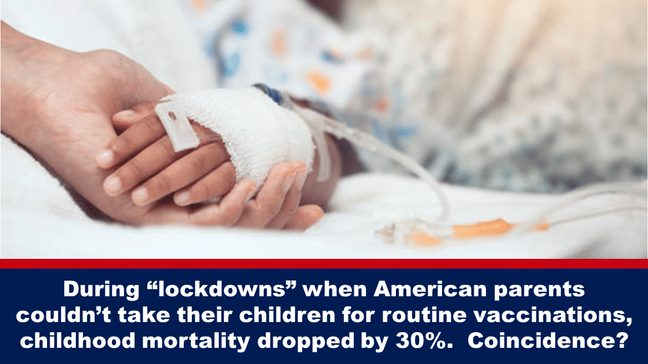 According to Dr. Mercola, data from the first few months of the covid pandemic seems to confirm this link; the death rate for American children dropped during lockdowns when many parents were unable to take their children for their scheduled vaccinations. During this period childhood deaths dropped by 30% going from an average of seven hundred deaths per week to fewer than five hundred during the months of April and May 2020.
