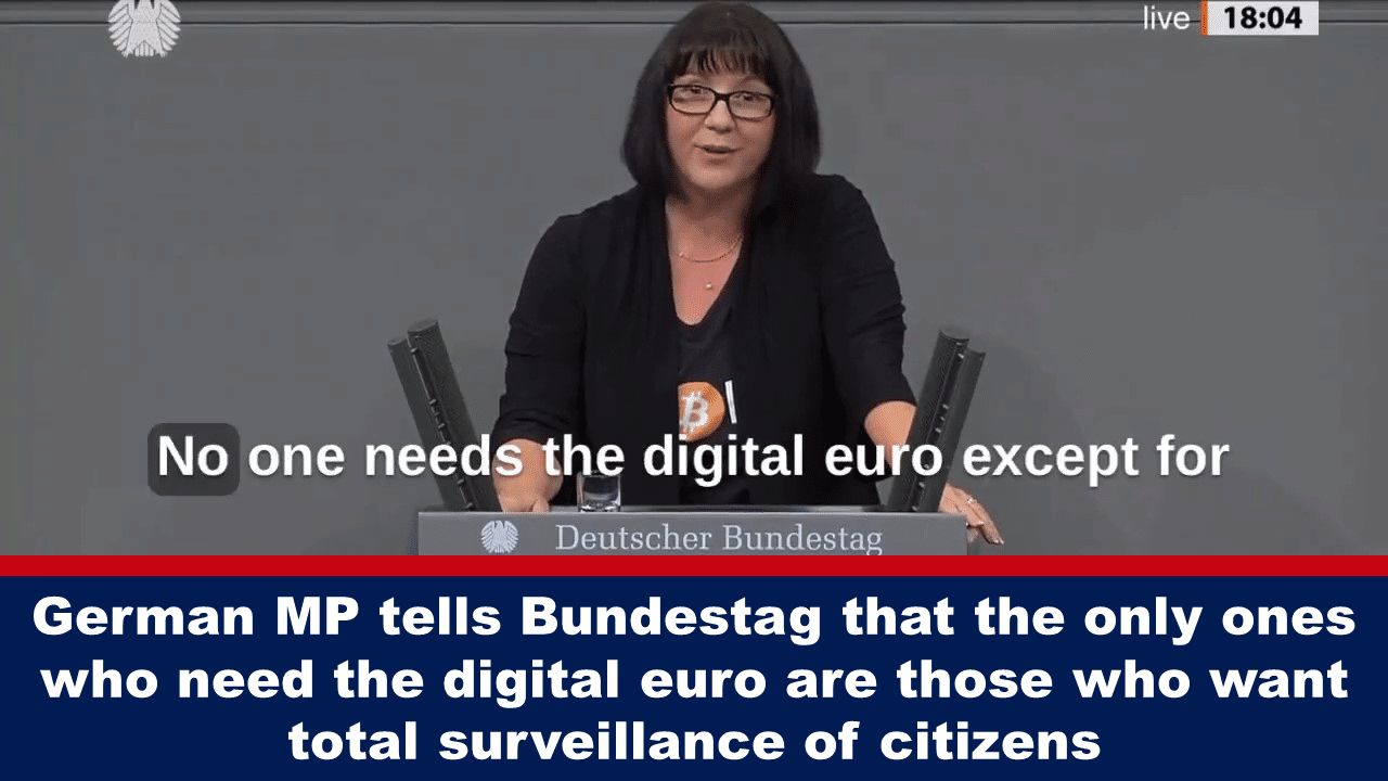 German MP tells Bundestag that the only ones who need the digital euro are those who want total surveillance of citizens