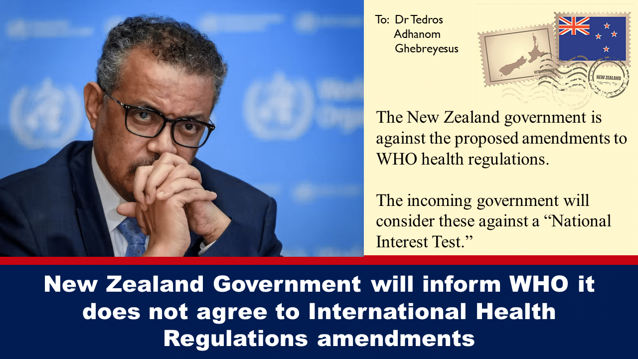 To this aim, the New Zealand Cabinet must “reserve against” proposed amendments to International Health Regulations by 1 December 2023.