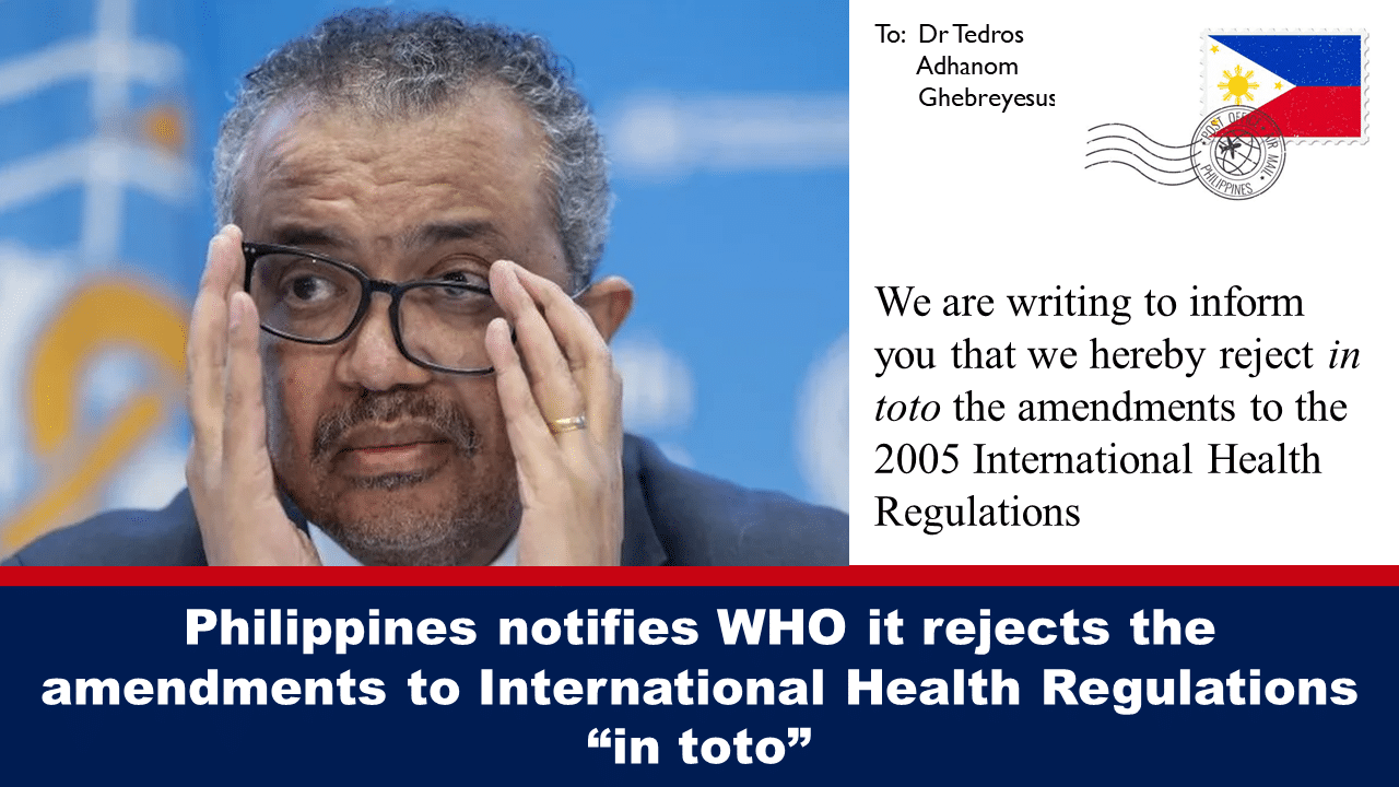 Philippines notifies WHO it rejects the amendments to International Health Regulations “in toto”