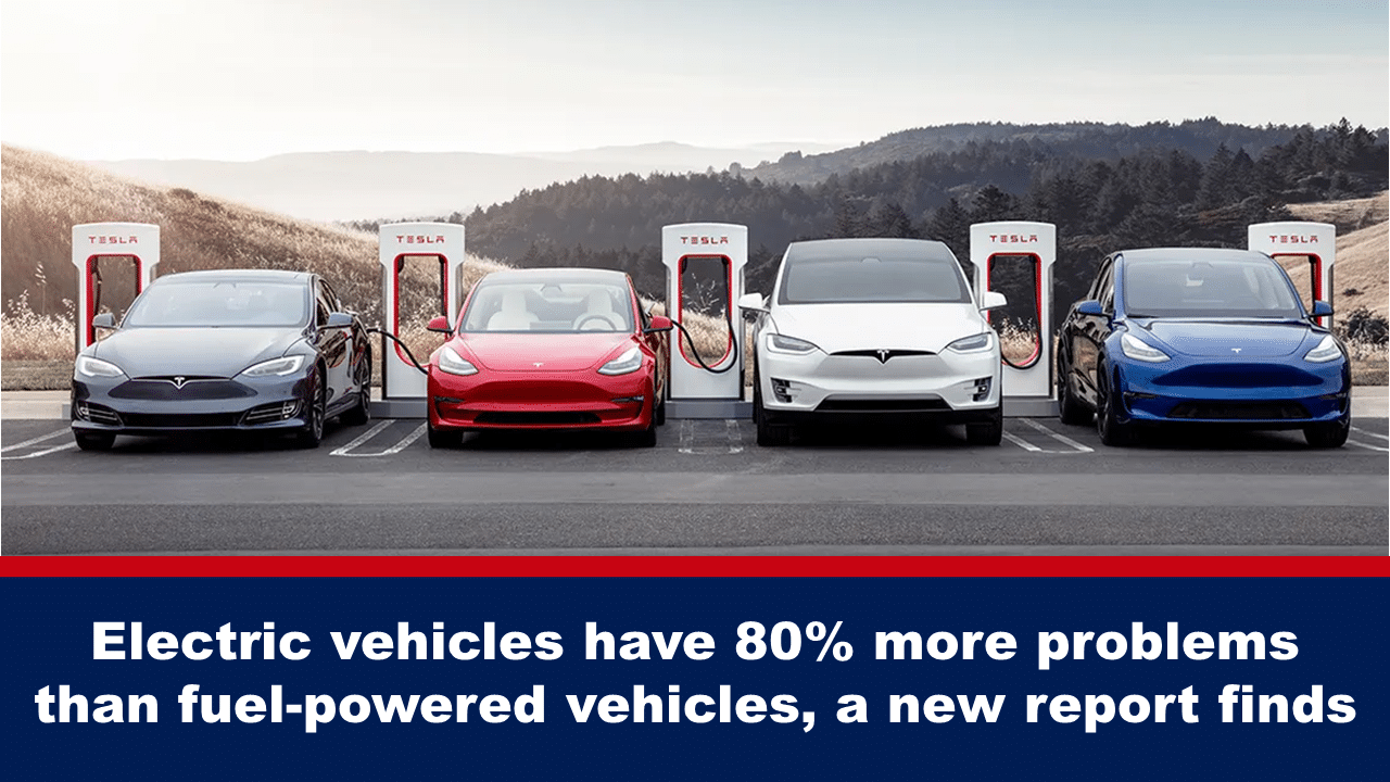 According to a new report from Consumer Reports, electric vehicles (“EVs”) have nearly 80% more problems and are generally less reliable than cars propelled by conventional internal combustion engines.