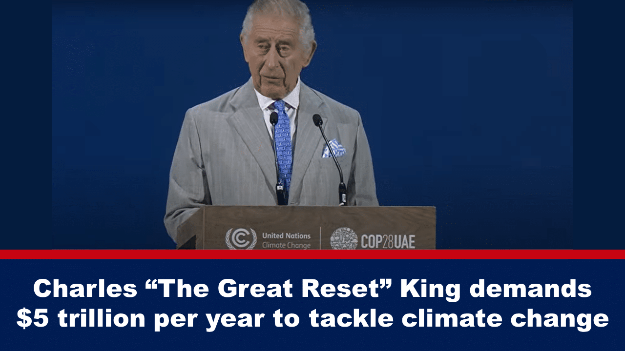 Yesterday, King Charles III delivered a speech at the opening ceremony of COP28. He said that “they” needed $4.5 to $5 trillion per year to drive their transformation that’s needed because of “climate change.”