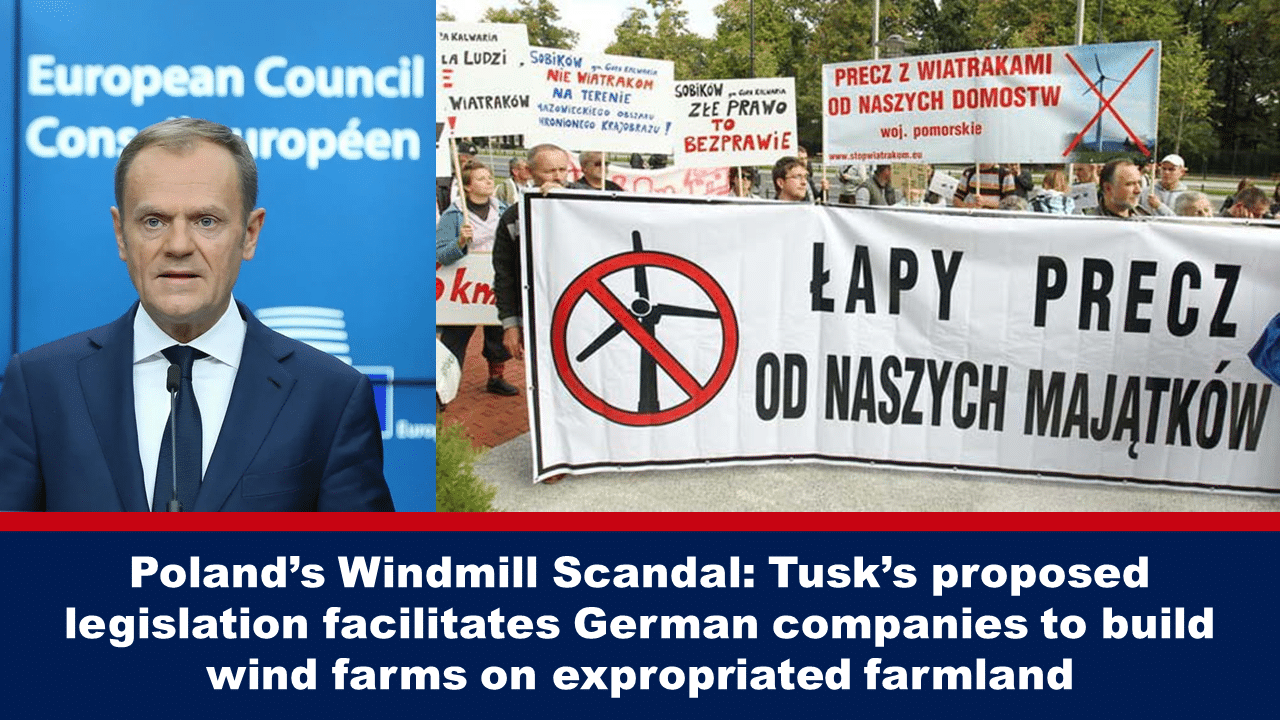 Telus agrees and said that it will be helpful to German business interests, adding that this is the way Tusk’s party is thanking German lobbyists for their support during the election. This is because the legislation allows wind turbines to be placed on agricultural land, which would allow German companies to purchase this land to build wind farms.