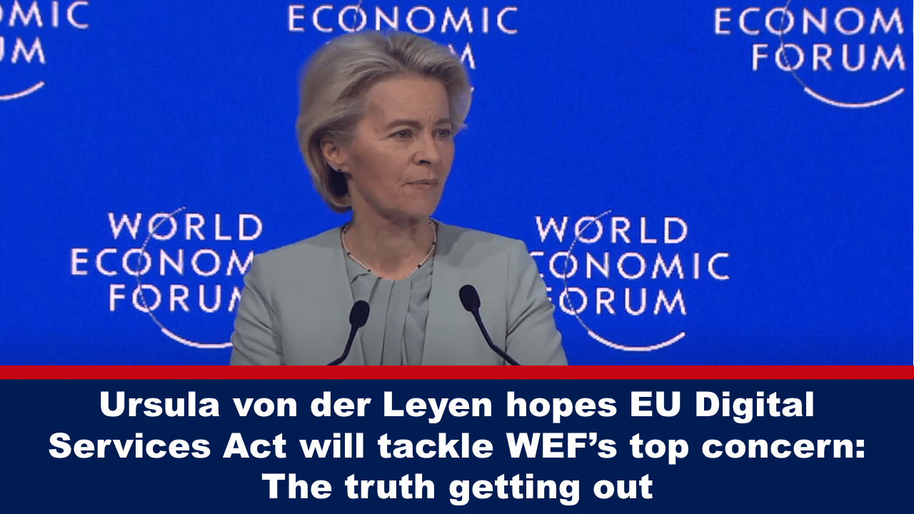 Von der Leyen provided a solution for the risks WEF is concerned about: “This is a time to drive global collaboration more than ever before … I believe it can be done, and I believe that Europe can and must take the lead in shaping that global response. The starting point for that is to look deeper at [WEF’s] Global Risk Report to map out a way forward.”