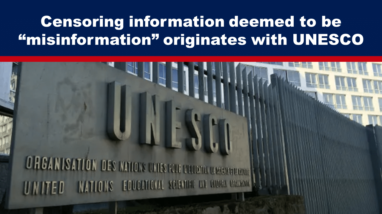 The idea of censorship in the name of “misinformation” began with the United Nations in 1945, specifically with the United Nations Educational, Scientific and Cultural Organisation (“UNESCO”).