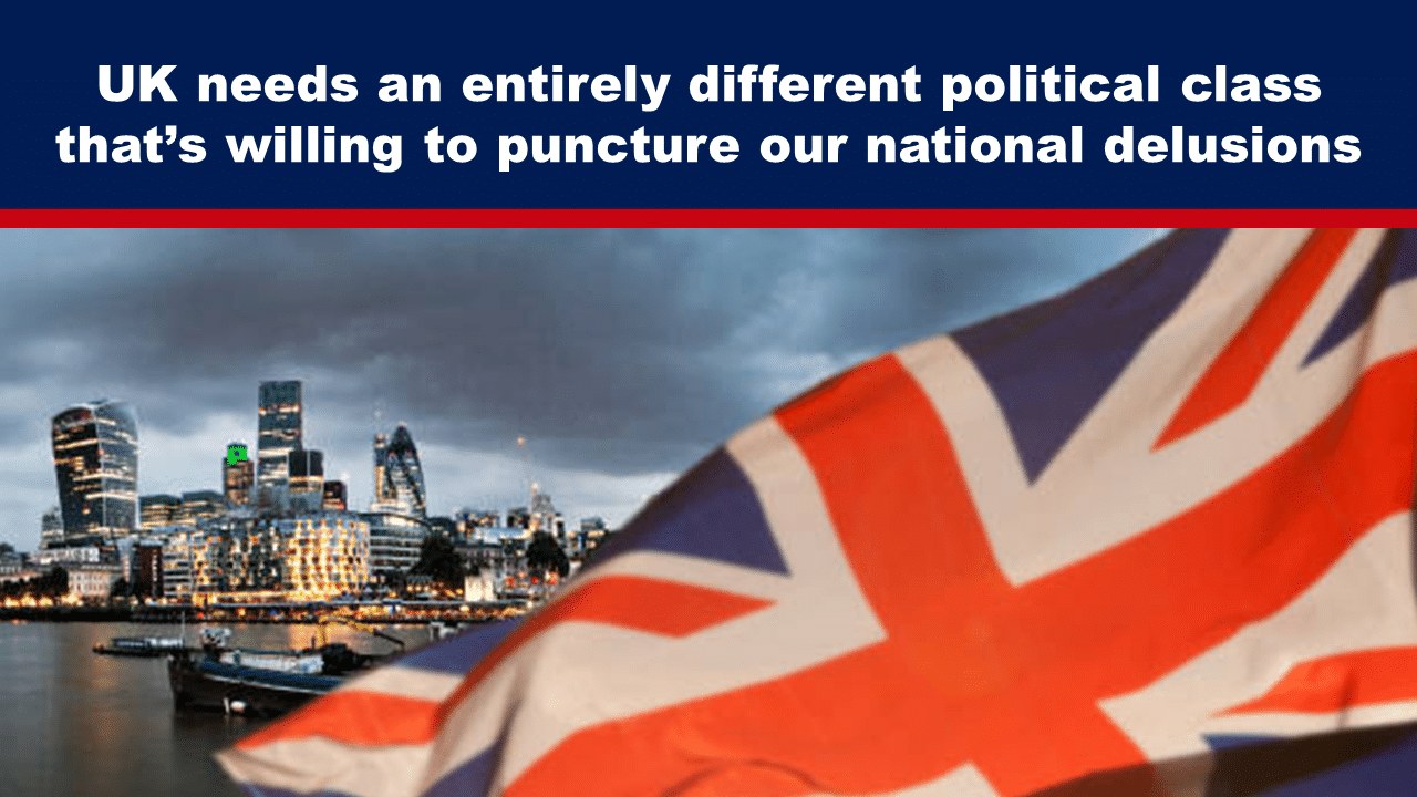 The current Labour-Tory-Whitehall consensus view is not working. All parties promise huge new spending on pensions and the NHS that the country simply cannot afford. We urgently need an entirely different political class that is willing to puncture our national delusions.