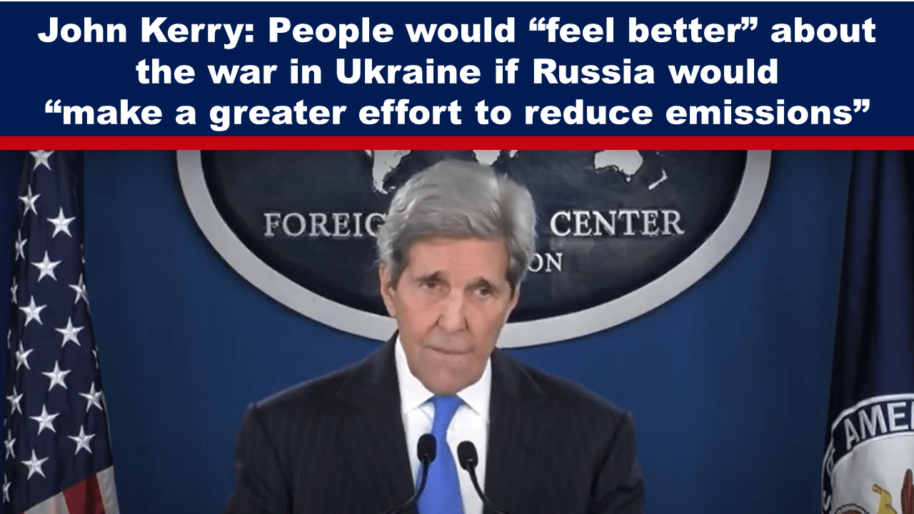 During a press conference on Tuesday, climate doomsday cultist John Kerry claimed that people would “feel better” about the ongoing war in Ukraine if Russia would “make a greater effort to reduce emissions.”