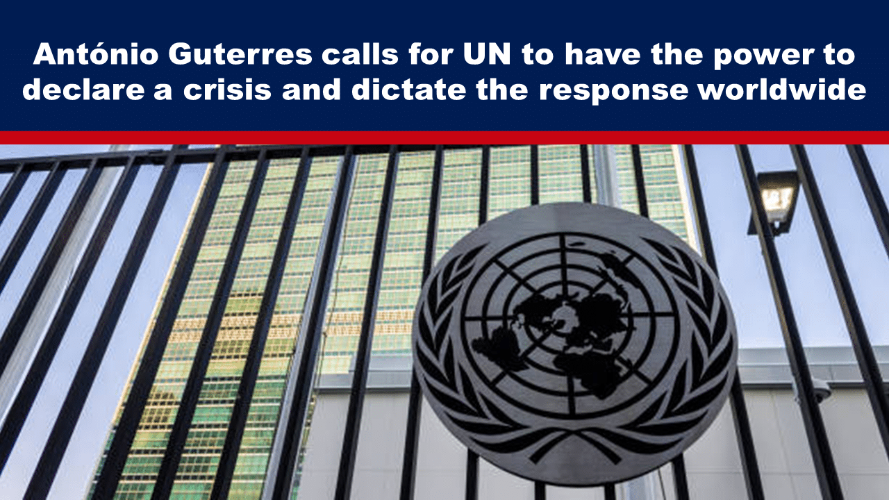 “Think of it as the biggest power grab ever at the global level. The Secretary General of the UN (António Guterres) has put out briefs where he is calling for the UN to be the one world global dictatorship with him at the helm.