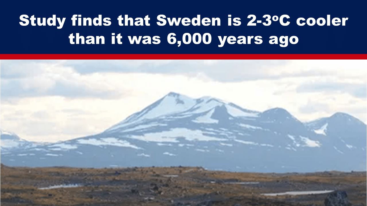 In February, two Swedish researchers published their study of plant megafossils in the Swedish Scandes and determined that Sweden was 2-3oC warmer between 6,000-16,800 years ago.