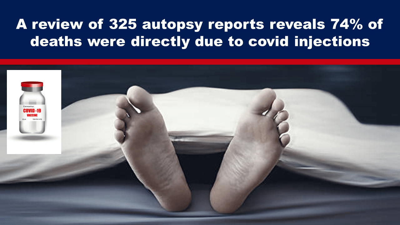 A review of 325 autopsy reports reveals 74% of deaths were directly due to covid injections