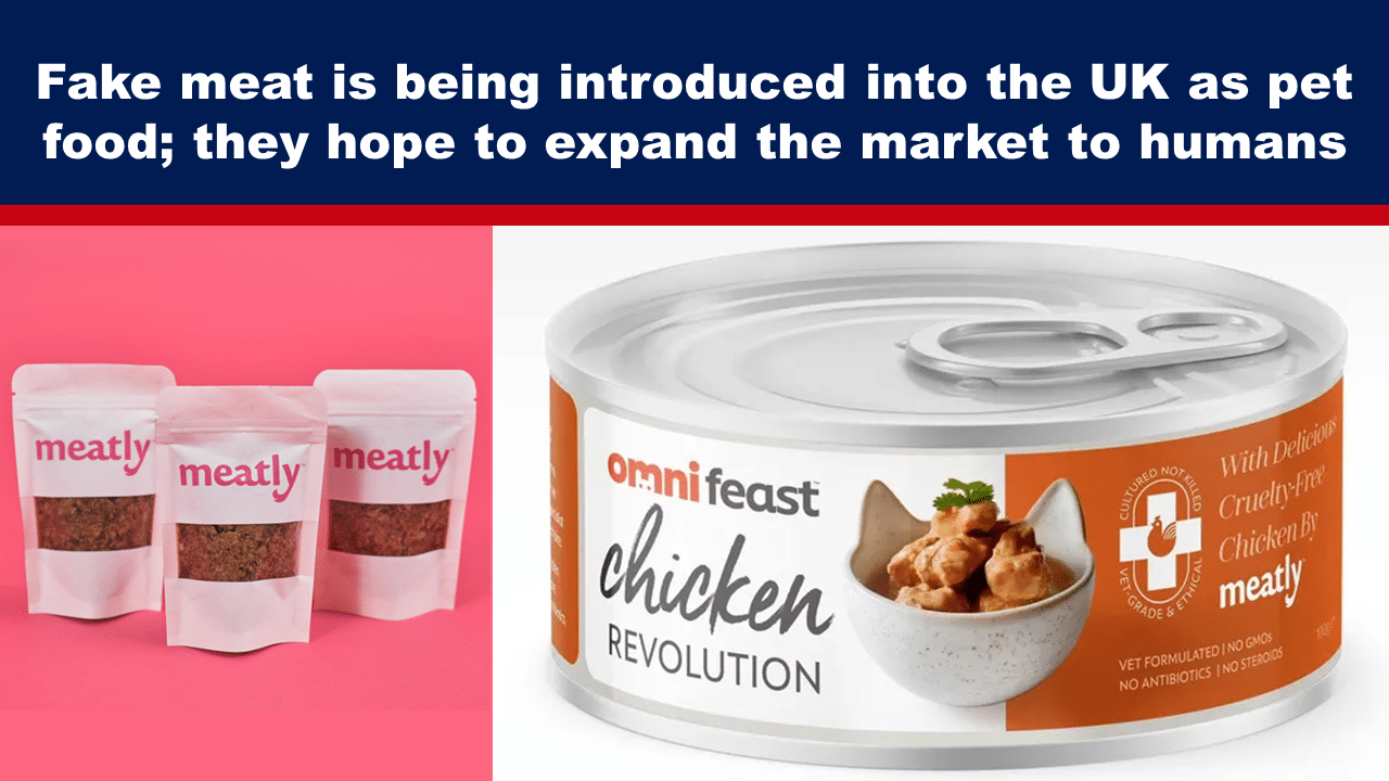 No doubt the people producing the fake meat, are the same people who own pharmaceutical companies so its double bubble for their pockets, when the pets fed fake meat inevitably become ill. Same old modus operandi – they cause the problem, so they can solve the problem and make money off both ends. Win win for the billionaires who never seem to have enough. Avoid this stuff like the Plaque- which they also made lots of money out of BTW!