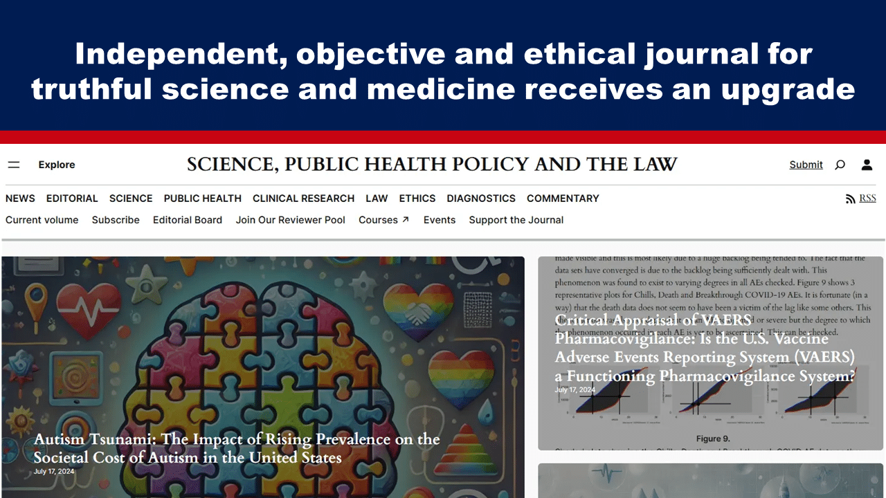 The peer-reviewed journal Science, Public Health & the Law has received an incredible new upgrade. The journal is for the growing community of ethical, incorruptible academic scientists and physicians.