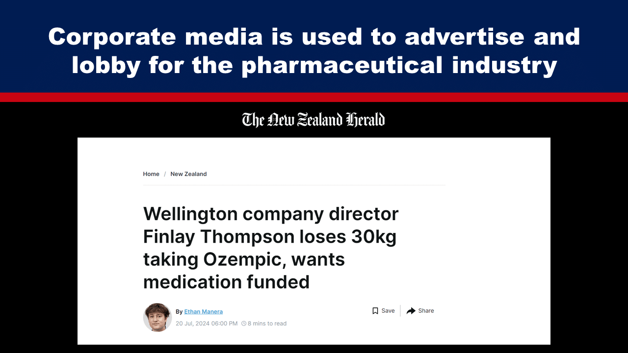 Using the example of a recent article on the weight loss drug Ozempic published by The New Zealand Herald, Dr. Guy Hatchard demonstrates how corporate media is used to advertise and lobby for the pharmaceutical industry.