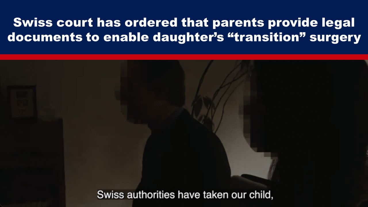 Parents separated from their daughter for objecting to her gender “transition” must, under threat of criminal charges, hand over documents to enable her legal “sex change,” a Swiss court has ruled.