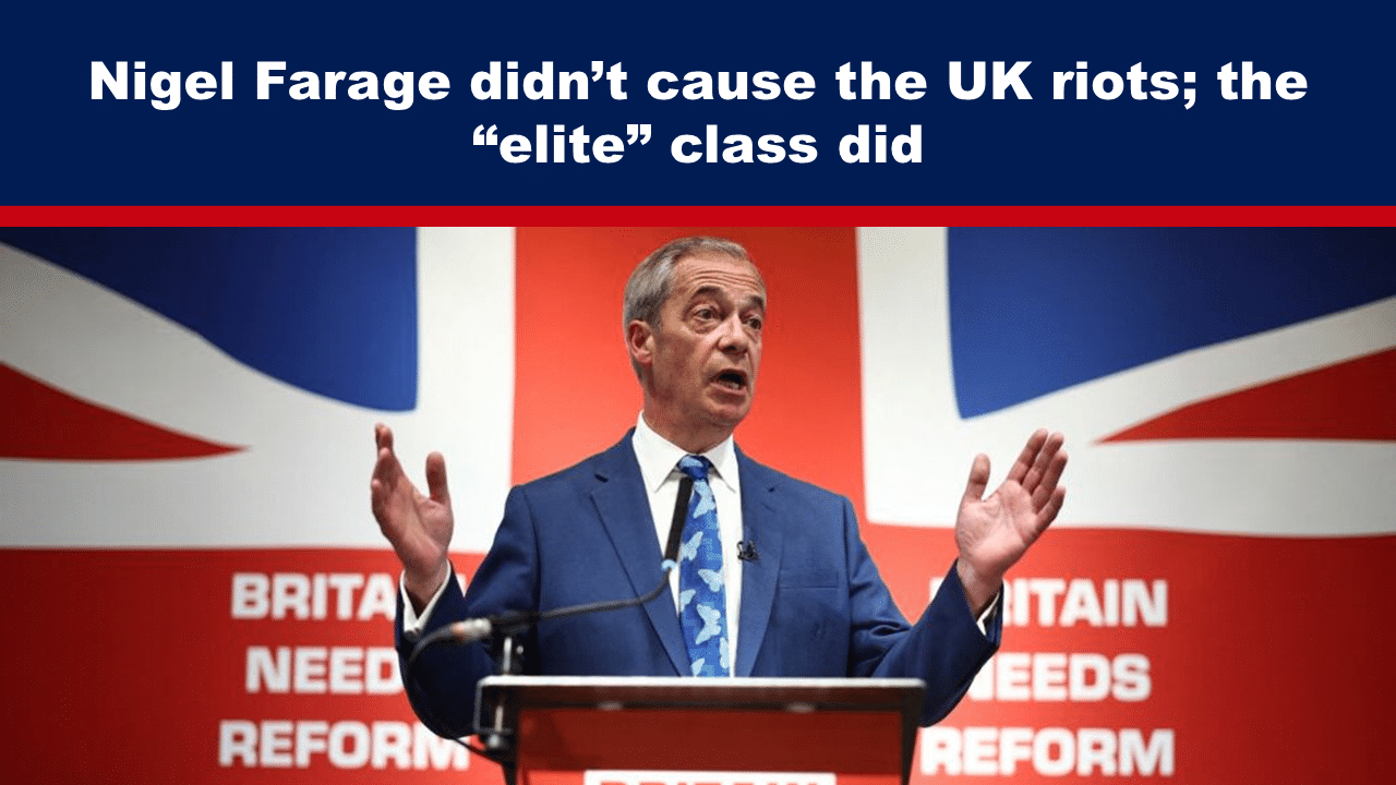 NO. Nigel Farage didn’t cause the RIOTS. The ELITE CLASS did.